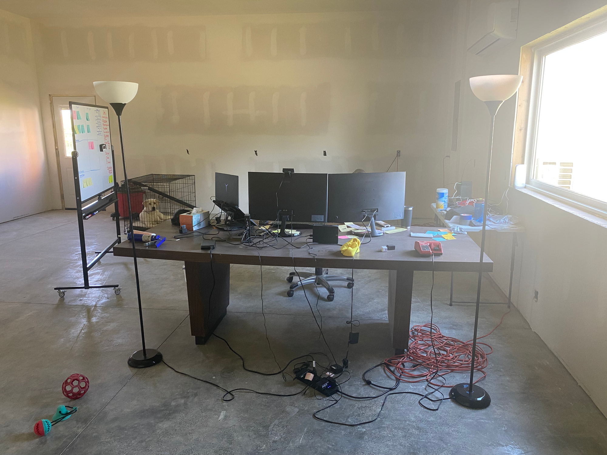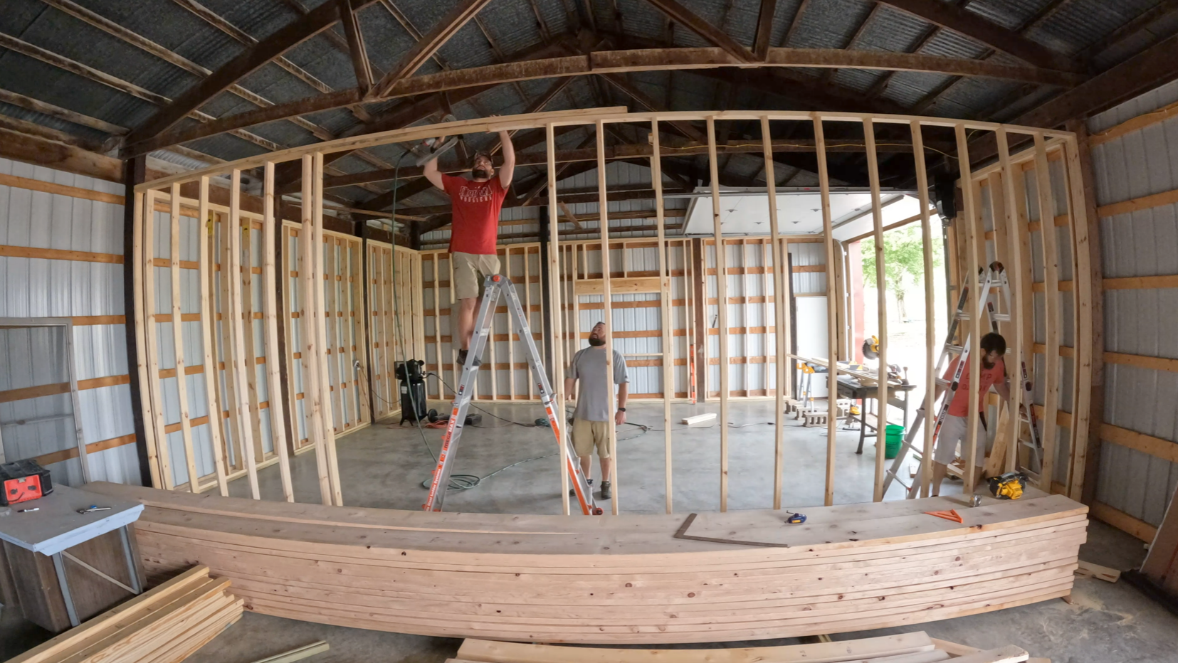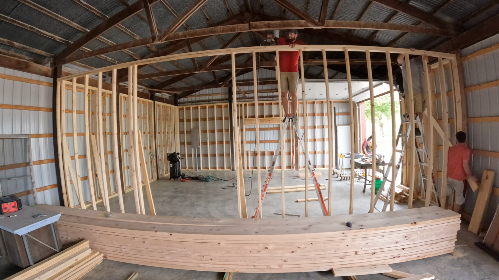 This lab he is in... it isn't something he just found for a good price. He helped build it himself right outside of his house. On his blog he talks about using a nail gun for the first time in May of this year when he started to get some materials in to finish the inside of the barn.